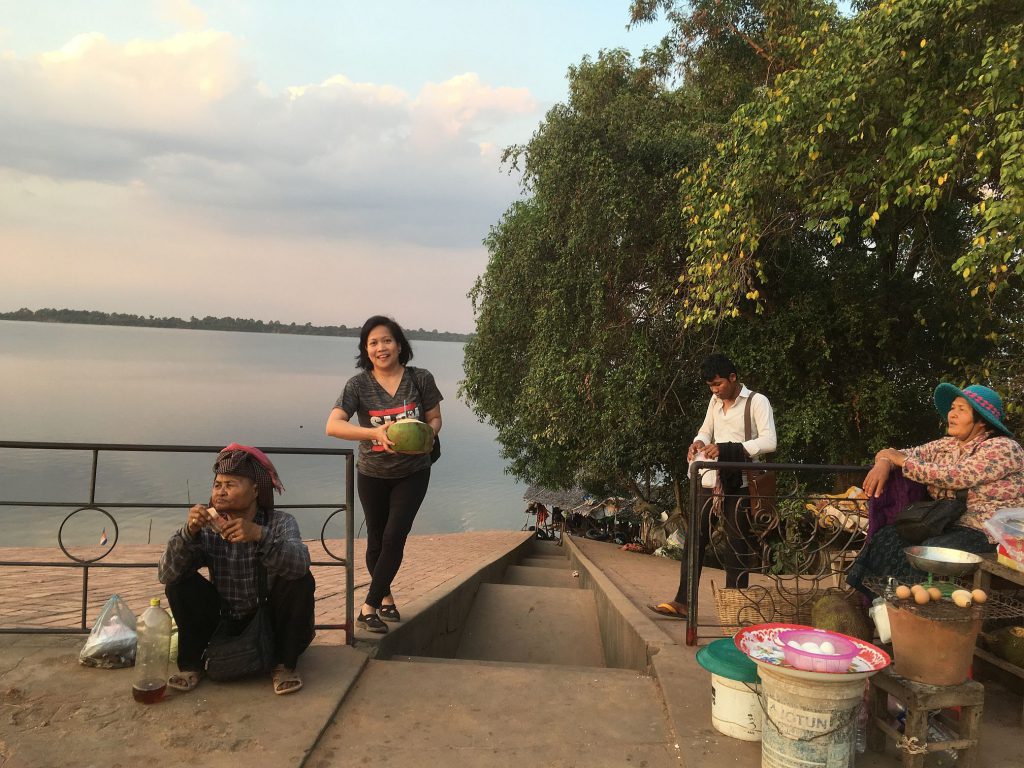 Ruby is enjoying fresh coconut juice at the reservoir (West Baray) in Siem Reap.